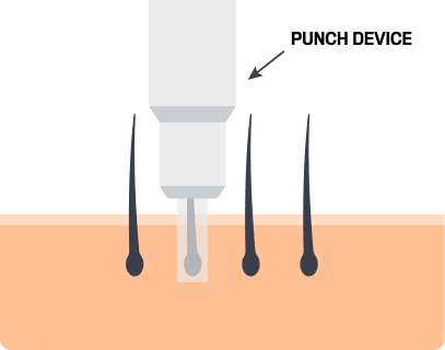 2. Hair follicles are individually selected with proper spacing to avoid any visible thinning or scarring. Then each follicle is gently removed with a little bit of surrounding tissue.