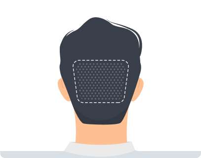 1. Donor area on back of head is shaved to allow hair to be extracted with a tiny punch device.